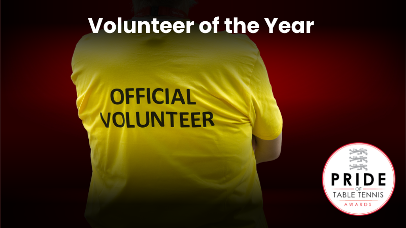 To recognise a person over 25 years of age for their dedication, commitment or impact in/on table tennis on a voluntary basis over the past 12 months. This may take place at a club, local community, league, county, schools county, regional or national level.