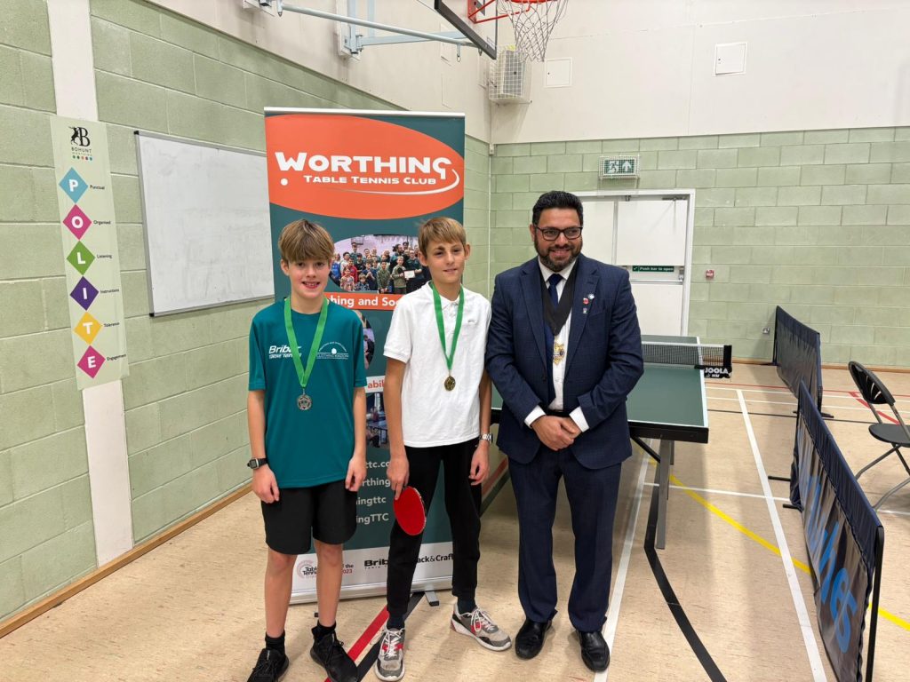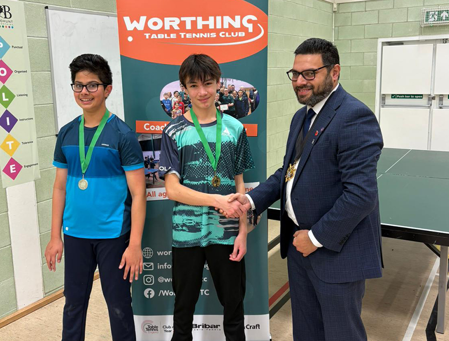 Medals were presented by Worthing Mayor Ibsha Choudhary. Big thanks go to Carl Walker, Worthing Community Independent Councillor for supporting the event and the work of Worthing Table Tennis Club to promote sport to young people in the local area.